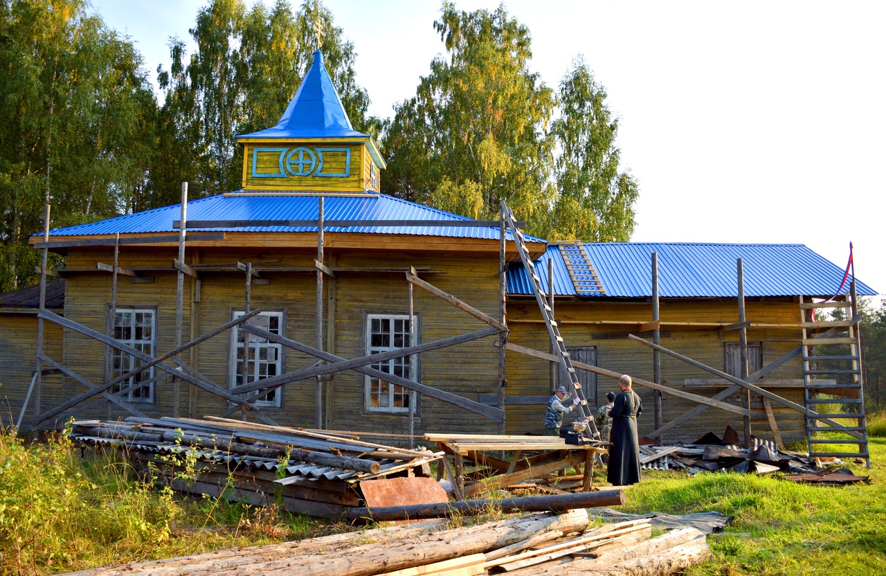 Вот уже 5 лет идут работы по восстановлению церкви. Как говорит отец Андрей, настоятель храма великомученика Георгия в Коскове, храм в Жаравихе — один из двух деревянных храмов в Кичменгско-Городецком районе. Второй находится в деревне Еловино.